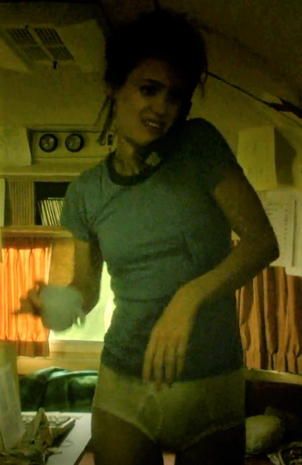 At Cardiff, Cameron deviates from the professional manor in which the other characters work. Ignoring orders, blasting music, and keeping a messy and unorthodox work space. Being a college dropout, Cameron no longer has a home to go to, so she begins living at the office in secret, sleeping in her office space at night and coding usually video games pantless while blasting music.